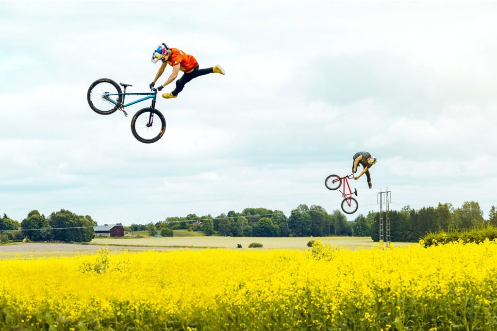Co prawda taki sposób wykorzystania krajobrazu wsi został już kiedyś wykorzystany w rowerowej kinematografii, jednak ten jest całkiem zacny. Swoją drogą zarówno Dawid jak i Martin szybko odnaleźli się w niekonwencjonalnej formie jazdy i filmowania. No ale czego nie robi się, by zaskoczyć wymagający świat rowerów. Jak to wszystko wyglądało? Może najpierw zaprezentujemy wam materiał filmowy, a poniżej świetne foty autorstwa Adama Klingetga / Red Bull Content Pool.